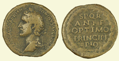 Les adjectifs usuels pour qualifier l'année à venir étaient bonus, faustus, felix et fortunatus. Ils pouvaient être abrégés en ANFF = Annum Novum Faustum Felicem, comme sur cette monnaie d'Antonin le pieux (+138) sans doute offerte comme étrennes :