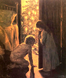 | Ah ! quel beau matin que ce matin des étrennes ! Chacun, pendant la nuit, avait rêvé des siennes Dans quelque songe étrange où l'on voyait joujoux, Bonbons habillés d'or, étincelants bijoux, Tourbillonner, danser une danse sonore, Puis fuir sous les rideaux, puis reparaître encore ! On s'éveillait matin, on se levait joyeux, La lèvre affriandée, en se frottant les yeux... On allait, les cheveux emmêlés sur la tête, Les yeux tout rayonnants, comme aux grands jours de fête, Et les petits pieds nus effleurant le plancher, Aux portes des parents tout doucement toucher... On entrait !... Puis alors les souhaits... en chemise, Les baisers répétés, et la gaîté permise ! |