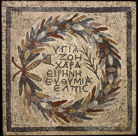 Une mosaïque du +IVe siècle découverte à Halicarnasse (au British Museum) énumère tout ce qu'on peut souhaiter pour la nouvelle année :