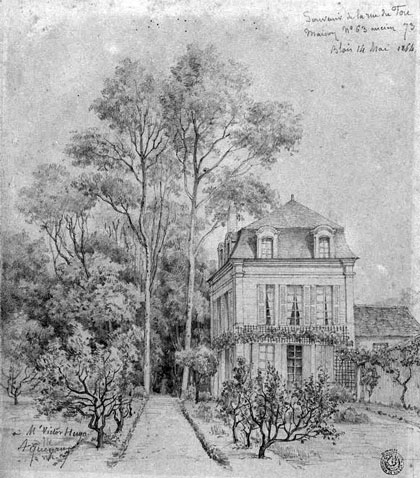 Son père, Joseph–Léopold-Sigisbert, comte Hugo, général d'Empire, marié en secondes noces avec sa maîtresse corse Catherine Thomas avait d'abord acquis, pour sa retraite, la propriété de Saint-Lazare, une ancienne léproserie à l'emplacement de l'actuel lycée Augustin-Thierry; puis il avait acheté, en 1816, une maison au 73 de la rue du Foix (démolie, vers l'acuel n° 65).