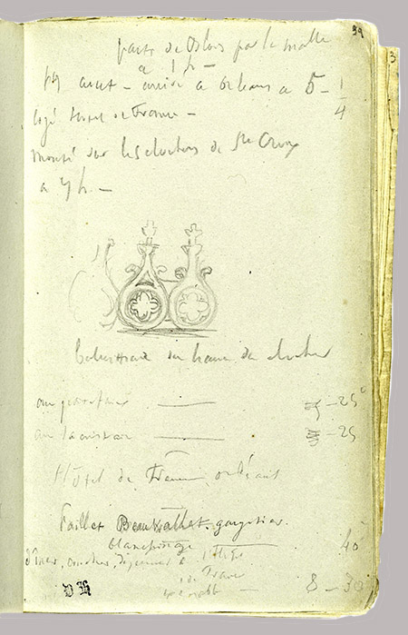 | Hugo, Carnets de voyage d'août 1834 - folio 39 (d'après les Etrennes orléanaises de 1834, p. 227, l'Hôtel de France, place du Martroi, était tenu par Paillet-Bonvallet |