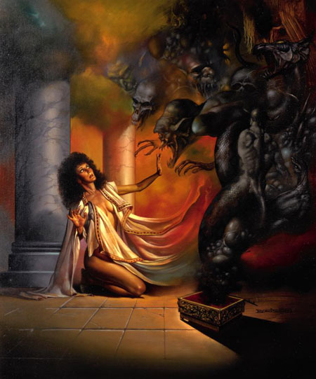 | Curieuse, Pandore ouvre le coffret contenant tous les maux | |