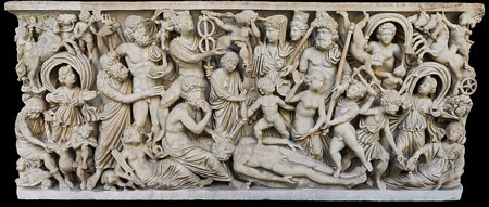 | Sarcophage romain du +IVe siècle. Musée archéologique national de Naples. |