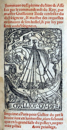 DE ASSE ET PARTIBUS EJUS (De l'as et de ses divisions), 1514 Fruit de 9 années de recherches, composé en 15 mois, c'est un essai d'interprétation des notations chiffrées (monnaies, poids, mesures) qui apparaissent dans les textes des jurisconsultes, des historiens ou de Pline. Budé s'y fait numismate, arithméticien, économiste, sociologue. Notes marginales et index rendent l'ouvrage plus utilisable. |